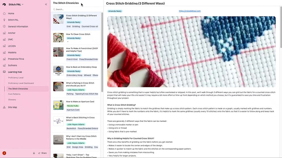 Extra! Extra! Read all about it! Browse an extensive knowledge bank of blogs contributed by experts in The Stitch Chronicles. Don't wait any longer—access Stitch PAL now and let the magic of cross-stitching unfold before your eyes.
